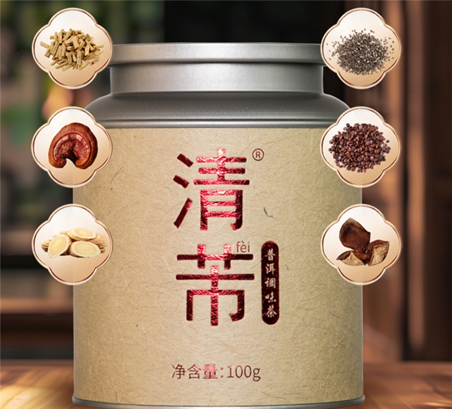 本品采用陈年普洱与健脾益肺的药食同源草本协同发酵,实现了茶底与传统方剂的深度结合。产品设计既遵循中医“脾主运化、肺主气”的整体理论,同时运用现代发酵工艺,显著提高了活性成分的析出率与人体吸收效率。本产品以陈年普洱茶为基底,融合党参、灵芝、黄芪、炒紫苏籽、炒莱菔子、陈皮、炒黄芥子、茯苓等十余种天然草本植萃,配方组合周密、性质温和,适合作为日常调理饮品长期饮用。清(肺)芾普洱茶秉持亲民定位,性价比出众。其性质温和,尤其适合中老年人作为日常之选,进行细水长流式的肺部养护。有别于追求快速见效的产品,本品更侧重于通过日常饮茶实现渐进式调理,旨在温和地改善肺功能,帮助使用者从容应对季节更替与环境变化。