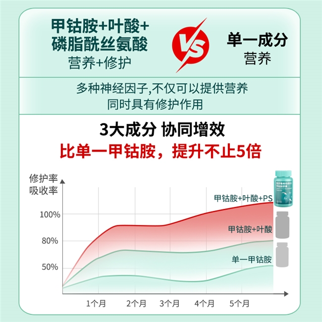 这个配方不仅能让神经细胞更健康,还能帮助受损的神经恢复,还能让你变得更聪明,记忆力更好。同时,它还能帮助你更好地消耗能量,减少大脑和身体的疲劳感。临床数据显示,其缓解耳鸣、肢体麻木的效果比单一甲钴胺产品提升不止五倍,针对神经性疼痛的改善效率也显著提高。